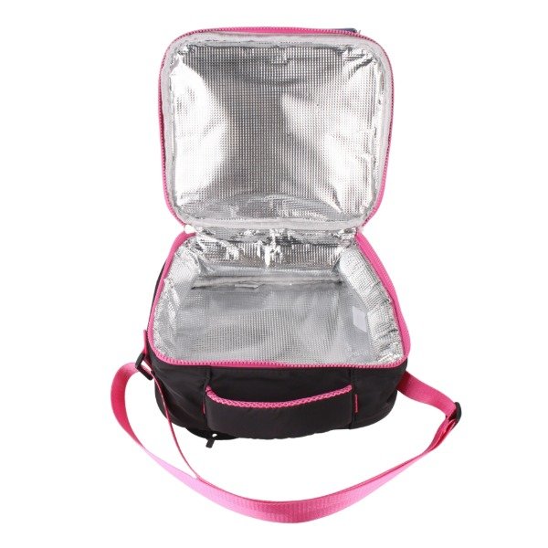 Asa de mano fija acolchada y correa al hombro ajustable.